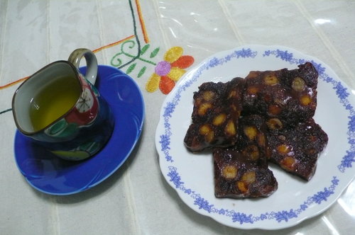 ↑午後甜點--蓮子紅豆糕佐烏龍茶