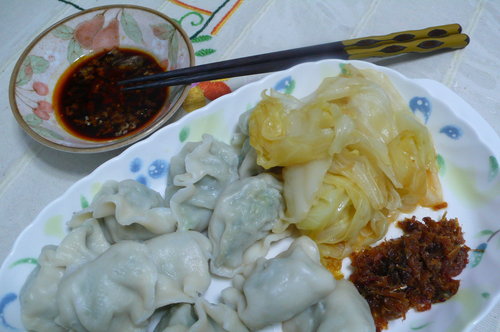 ↑韮菜水餃+xo干貝醬+高麗菜拌蔥油