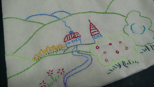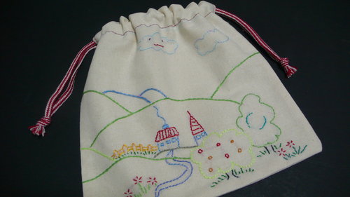 簡單畫個線條 慢慢繡上喜歡的顏色 就是一個獨一無二的收納袋
