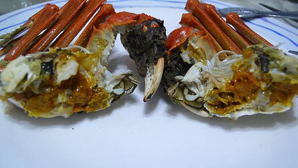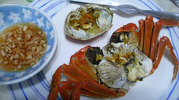 這是大陸進口的,號稱7.8兩,膏黏肉甜,但大閘蟹肉不多,吃一隻挖挖弄弄得搞半天滿花時間!