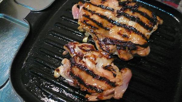 肉在上面烤後烙出一條條烤痕,很粗獷的感覺 烤盤導熱快,溫度到時要轉小火,否則很容易烤焦的!